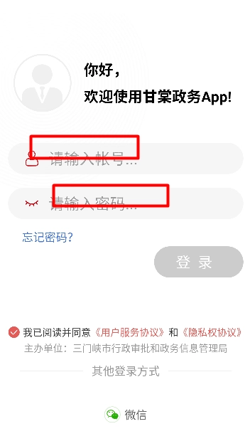 1、点击打开《甘棠政务》,输入账号密码完成登录并进入首页。