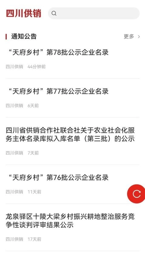 四川供销最新版是一款专注于新闻资讯传播的软件,它把新闻资讯划分为精选、时政新闻、省社要情、供销动态等多个主题频道,方便用户查找并查看自己感兴趣的内容,让各类新闻资讯的浏览更便捷。软件会全面推送各类新闻,用户能随时随地查看,轻松获取实时更新的资讯,足不出户就能知晓天下事,及时掌握新闻的最新动态。此外,软件还以可视化方式介绍供销省社概况,帮助用户快速了解省社情况;同时实时推送通知公告信息,让用户第一时间知晓最新通知。有需要的用户,欢迎来使用四川供销免费版!