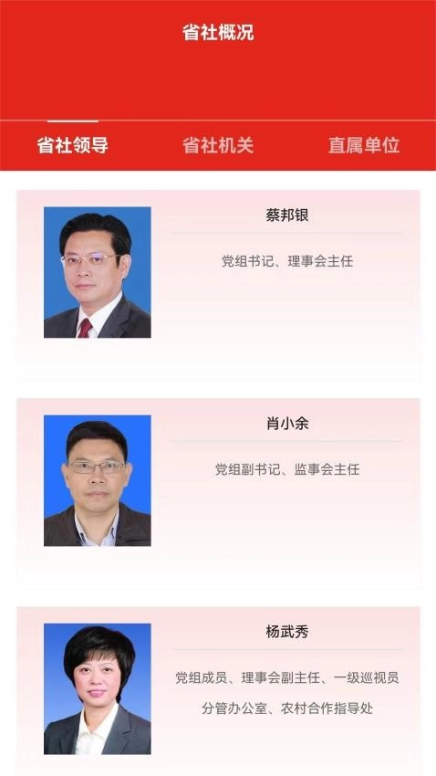 在省社概况中心,能够查询到省社领导、省社机关、直属单位等各类介绍信息。