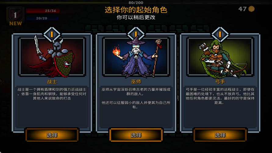 7、游戏刚开始会有战士、弓箭手、巫师这三个角色,每个角色的技能都不相同,玩家可以自行慢慢探索。