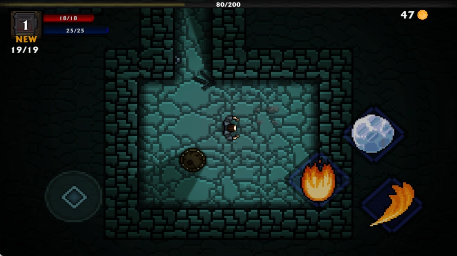 3、玩家需操控角色在洞穴内展开探索,击碎宝箱、击败怪物后,能够获取金币、魔力值以及经验。