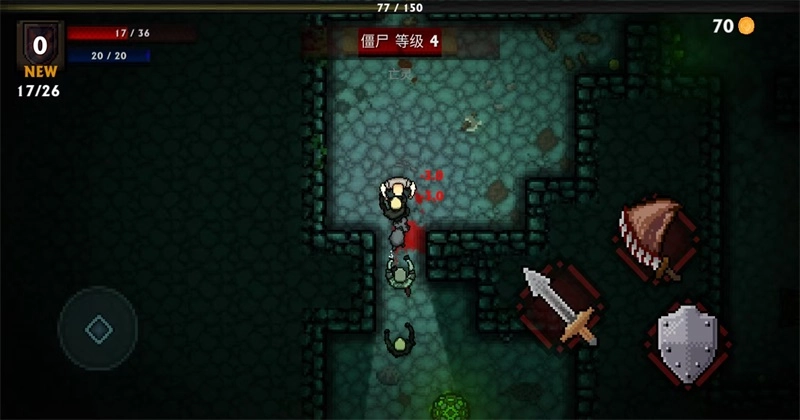 3、界面右下角的三个按钮功能说明如下:盾牌样式的按钮用于防御;位于其上方、呈“剑”形的按钮是攻击技能,使用时会消耗魔法值;而左侧那个带有三滴血标识的“剑”按钮则是普通技能,无需消耗魔法值。