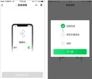 这一步是手机通过蓝牙和OBU建立通信连接,系统会自动搜索电子标签,您需要稍作等待。等激活完成后,屏幕会弹出提示框告知连接成功。