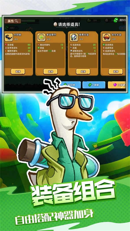 《机能英雄》是一款Roguelike割草类休闲动作游戏,玩家将化身一只勇敢无畏的大鹅,运用各类强力的远近武器,击退如潮水般袭来的敌人。战斗过程中,还能获取随机掉落的增益效果,让自己变得愈发强大。游戏内共有19种拥有不同攻击方式与技能的英雄可供选择,每个英雄使用的武器都独具特色,从近战到远程武器应有尽有,更有不少搞怪又魔性的武器等待玩家解锁收集。感兴趣的朋友们可别错过啦,赶紧来体验游戏吧!
