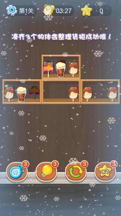 4、融合货柜元素与三消玩法,把相同物品归置一处就能消除,以此合理规整货架。