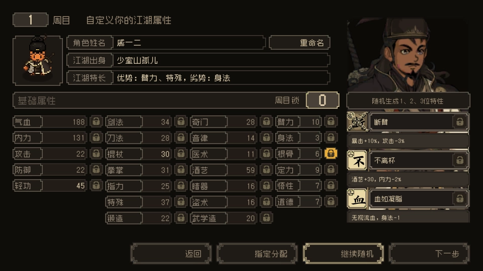 5、之后可以自定义你的江湖属性;