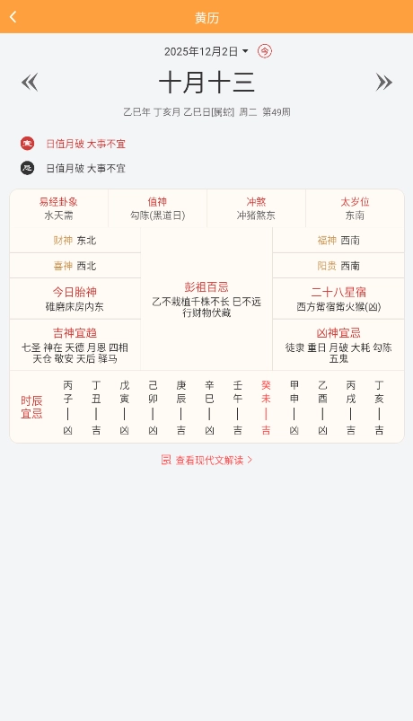 5、打开日历可看当日黄历