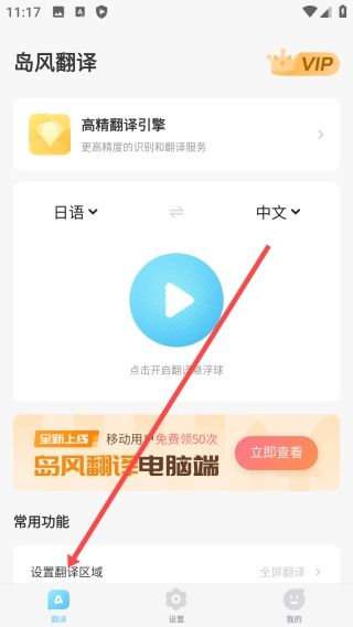 1、我们点击【设置翻译区域】,进入后选择翻译方式。
