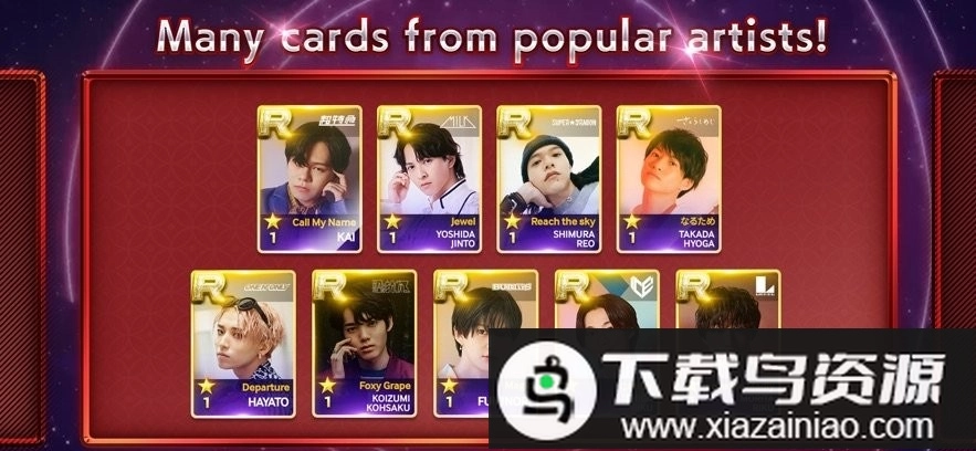 玩家可以自由挑选心仪的音乐开始游戏;通过强化卡牌来冲击更高分数;粉丝之间能够相互竞争排名;收集喜爱偶像的卡牌也是一大乐趣。
