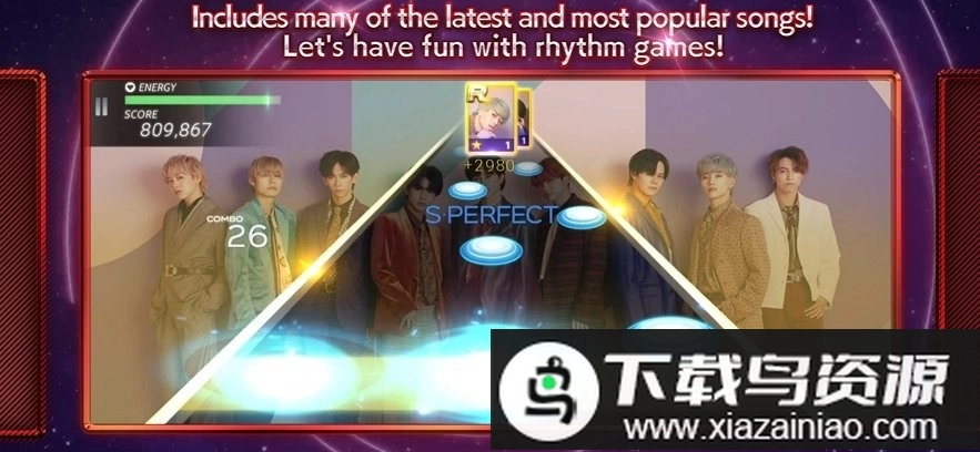 这款以韩国偶像团体为主题的节奏游戏,将ebidan的众多歌曲融入其中,玩法与经典的节奏大师相似,需要玩家跟随音乐节奏准确点击,对手速和反应力有一定考验,整体难度适中,值得一试,喜欢的玩家就在本站。