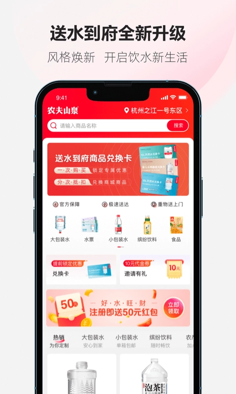 送水到府是一款专注于农夫山泉产品的预约订购客户端平台,致力于为广大消费者提供便捷高效的订水服务。平台不仅支持送水到家,还提供免费配送服务,最快2小时即可送达,充分满足用户的紧急需求。此外,平台涵盖多种送水服务选择,包括大包装水、桶装水、小包装水、饮料、食品等丰富品类,更设有购物商城,方便用户一站式选购。新用户注册即可领取优惠券,平台还会定期推出各类优惠活动,为用户带来更多实惠。