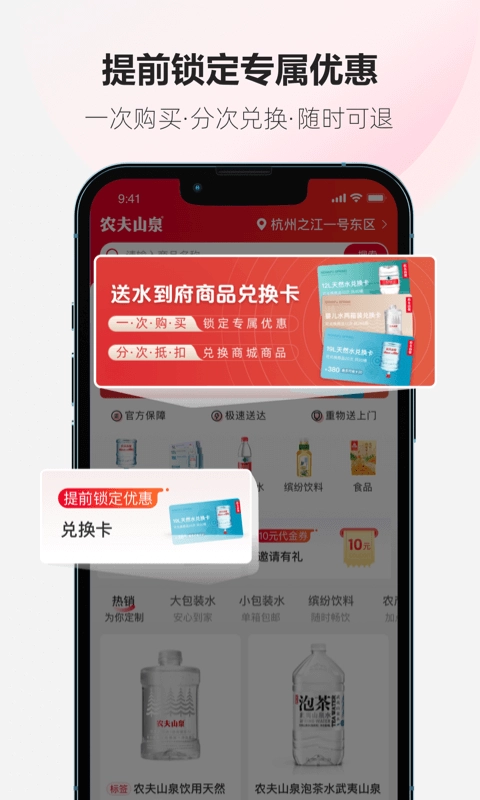 2、农夫山泉会定期推出送水上门的相关活动,用户下单就能体验送水服务。
