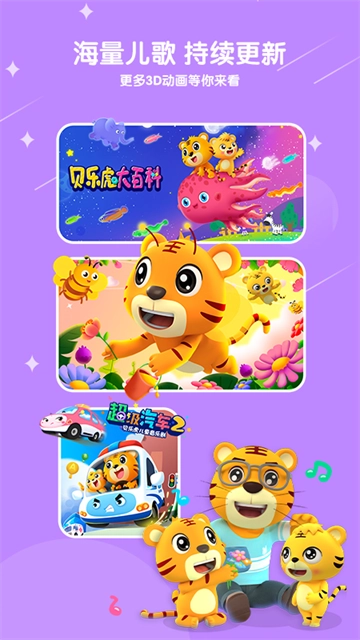 贝乐虎儿歌是专门为儿童设计的原创动画儿歌产品,借助活泼有趣的贝乐虎兄弟动画形象,把儿歌、故事、古诗等多种内容结合起来,让宝宝能在音乐、节奏与互动的氛围里学习知识,养成良好的习惯。