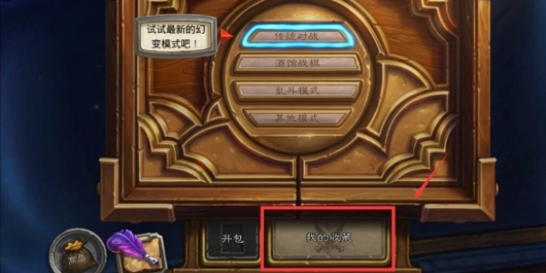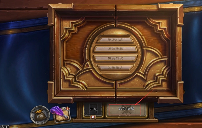 1、首先我们复制卡组代码,然后打开炉石传说游戏点击【我的收藏】按钮,如下图所示。