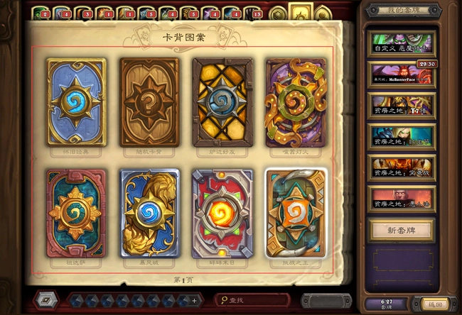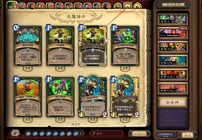使用套牌借用功能,可体验全部11个职业的套牌,一周后能免费挑选一副加入你的收藏!