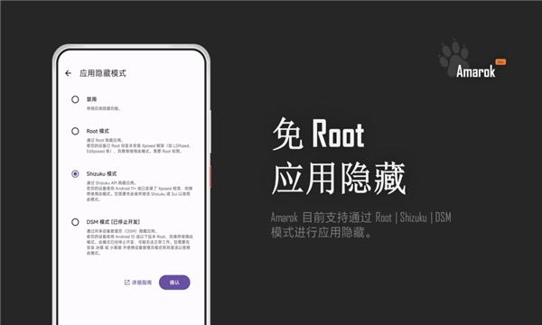4、多模式免root应用隐藏功能,兼容shizuku、dsm等隐藏模式,采用基于material3的全新ui设计。