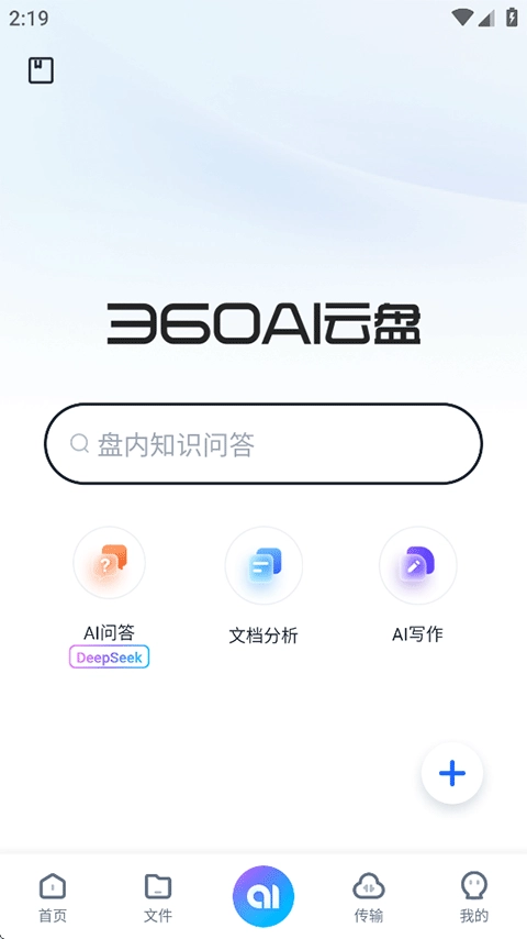 1、打开360AI云盘后,在首页的常用工具板块中,你可以找到文档扫描、相册备份、文件夹备份等实用功能。
