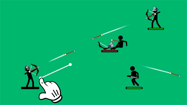 4、持续操控弓箭手射出箭矢,以此消耗敌方弓箭手的血量(通过上方进度条显示),直到将对手击败,从而完成关卡1。