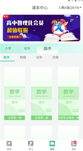 4、点击“学习”按钮后,用户能够查看自己当前正在学习的课本,以及对应的学习进度。