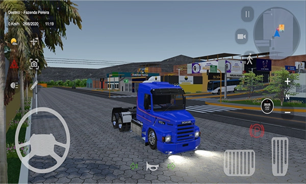 1、这款游戏支持切换多种视角,操作上左边负责控制卡车的行驶方向,右边则对应刹车和油门功能。