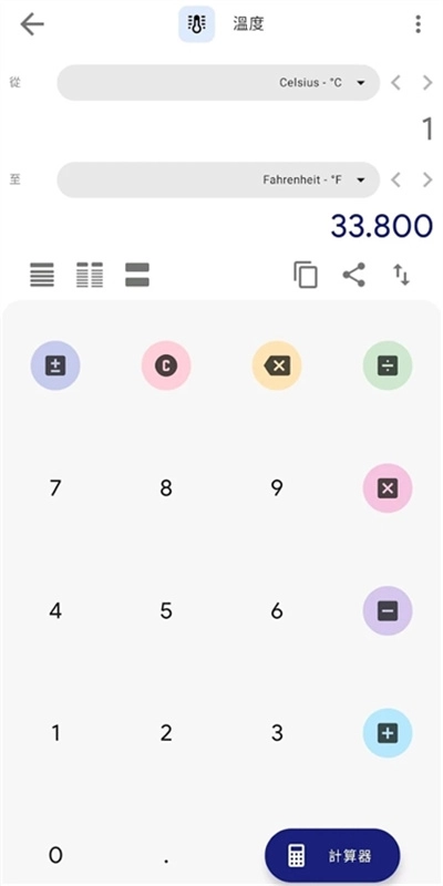 3、广泛的转换工具: 涵盖日常生活中的所有关键单位换算需求,如温度、长度、速度等。