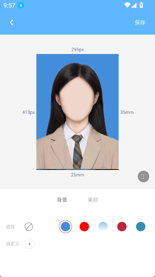 3、一键换底色:支持红、蓝、白等常见背景颜色快速切换,只需轻点一下即可完成背景更换,操作高效省时。