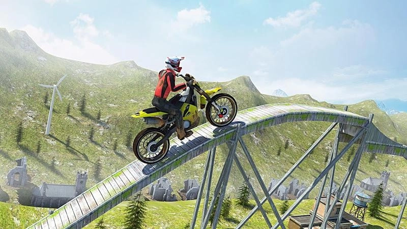 1.在特技摩托英雄最新版中,玩家将沉浸在一个由曲折蜿蜒的赛道组成的精彩世界里。