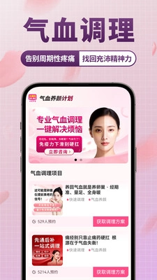 3、App内提供多种气血调理项目,用户可以根据自身情况获取个性化的调理方案。