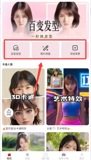 2、创意资源丰富,拥有海量风格多样的虚拟发型与丰富的卡通特效,能便捷地为图片添加趣味与个性化元素。