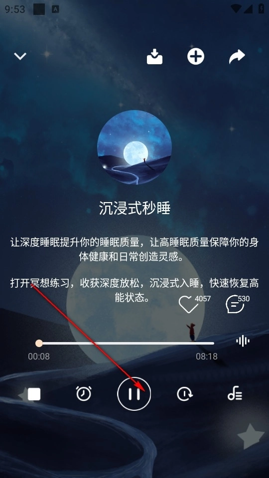 进入界面后点击下方播放按钮即可开始播放冥想。