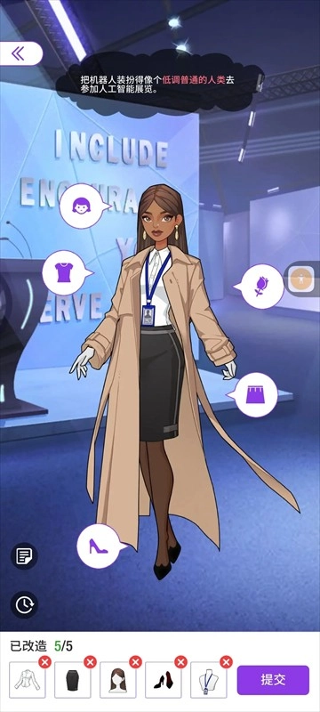 游戏里推进主线剧情的关卡每次尝试都要消耗定量体力,这类关卡包含两种不同玩法的任务。一种是帮游戏角色调整外在形象,要从给定的多个搭配方案里选出契合度最高的;另一种则是按照具体要求去构思造型或者制作指定服装,比较考验玩家对服饰搭配的把控能力。