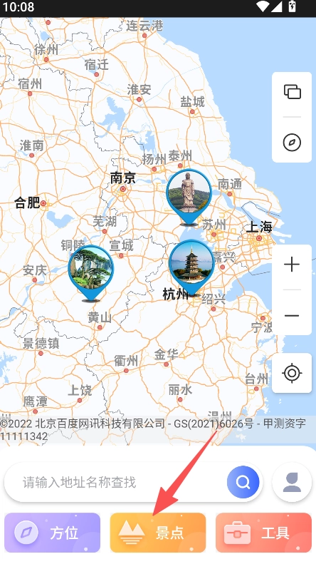 3、包含搜索功能,可输入地址名称查找对应景点或街景内容,精准定位目标景观。