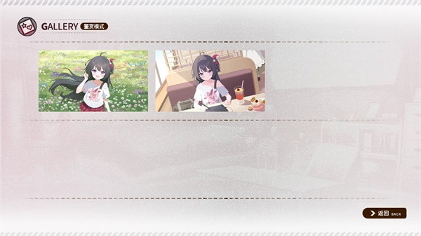 完成首次游戏挑战后返回初始界面,选择“鉴赏模式”选项,即可浏览角色相关的高清美术插画。