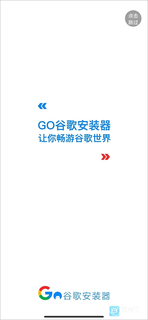 1、gms安装器并安装完成后,进入软件映入眼帘的干净的启动页面,没有花里胡哨的广告,不得不说点个赞,说一声良心。