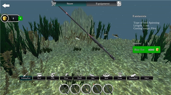 游戏商城里还可以更换各种鱼竿配件和鱼饵