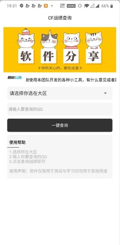 CF战绩查询可以帮助用户来快速查找其他人的CF游戏战绩,只需要登录乐成后在左边窗口中关联QQ号,并选择要查询的游戏服务区就可以一键查询,非常方便。软件可以帮助用户来掌握别人最真实的战绩。如果有朋友对这款CF战绩查询感兴趣的话,可以在游戏爱好者网站找到资源,可以直接免费使用气力啊。关于软件更多的内容,下文也会详细介绍。