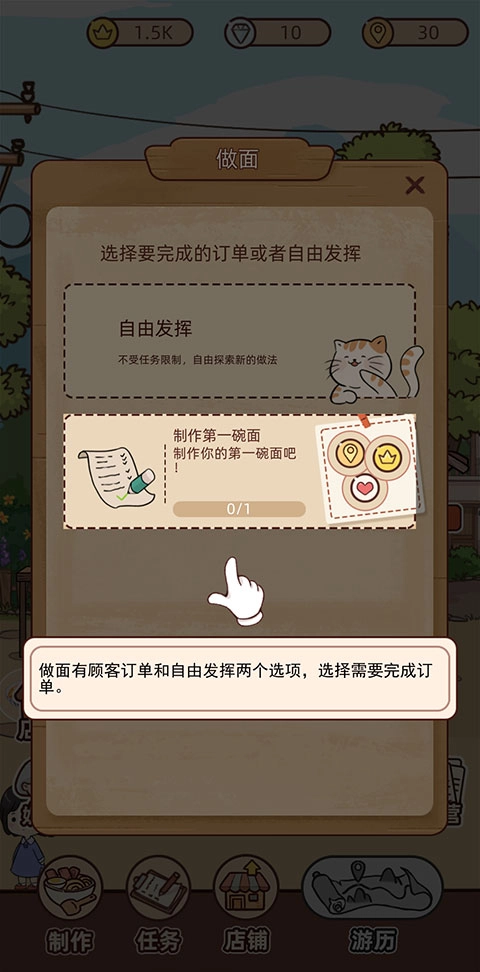 一共有顾客订单和自由发挥两种选择,点击需要完成的订单。