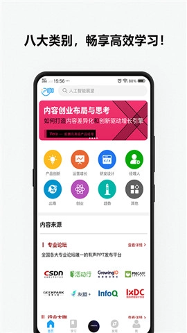 平台的课程内容涵盖八大类别,具体包含产品创新、运营增长、研发设计、经理人、出海、创业、趋势以及其他类别。