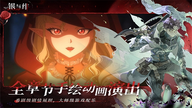 《银与绯》面向成年玩家群体,采用哥特风格与中世纪夜族题材相结合的设定,打造了更为深入且独特的故事内容。故事主线围绕小镇青年诺亚展开:他因感染黑血病被教会判定为异端,正待处刑之际,被一位神秘的“夜族”少女解救。而诺亚的身份也因此发生转变——他将成为夜族重返故乡的关键角色。在后续的旅程中,教会、夜族、王国势力交织,末日预言背后的阴谋逐渐浮现,整个故事围绕“生”与“死”的核心命题展开了深刻探讨。