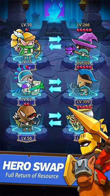 英雄的种类十分多样,涵盖了坦克、防御、近战输出、远程支援以及控制角色等不同类型,而且每个英雄都拥有独特的技能,让你能够打造出专属于自己的战斗军团,并制定出独一无二的战术策略。