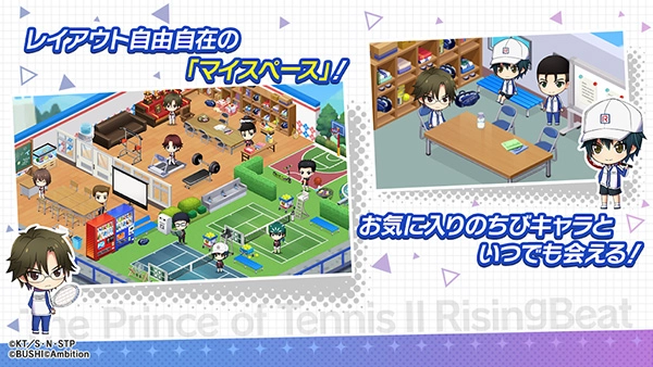 「比赛」界面融入了网球元素,网球王子的迷你球员会通过打网球的形式来演绎歌曲!玩家在游玩时,就像亲临网球场观看比赛、为王子们加油助威!而且在「比赛」过程中,玩家还有机会触发绚丽的背景特效,赶紧让王子们秀出帅气的击球瞬间吧!