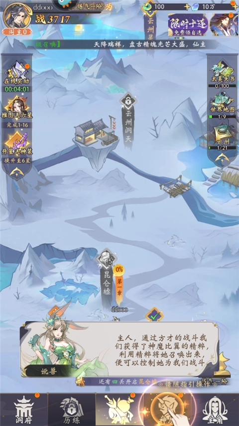 在奇幻天地间,与各路仙友结为伙伴,一同潜心修行,并肩探索神秘大陆;
