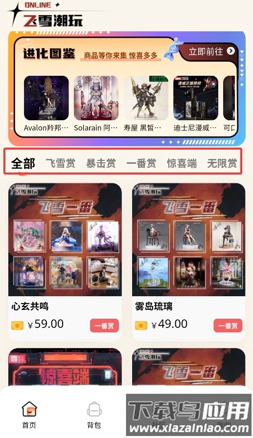 2、首页设有多种抽赏玩法,涵盖全部赏、暴击赏、一番赏等不同类型,用户能够自主挑选参与;