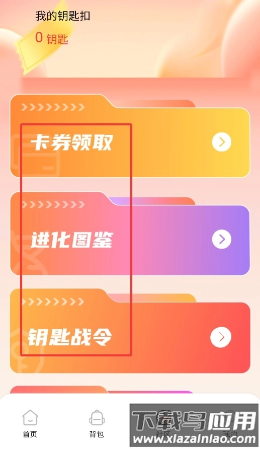 4、进入社区页面后,用户可以参与卡券领取、图鉴收集以及钥匙战令等各类互动活动。