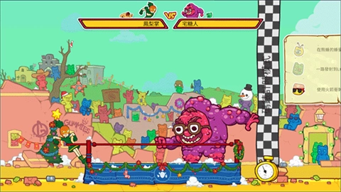 某些特殊造型的软糖能赋予额外助力,让飞行状态下的移动表现更出色——无论是高度、距离还是速度都会得到提升。但要是途中碰到带有执法者特征的软糖,就会导致速度下降。当野牛持续飞行一段路程后,会遇到一道关卡门,只有保持足够的前进速度,才能冲破这道门继续旅程。