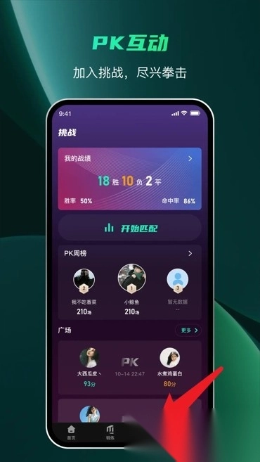 进入挑战广场与真实用户匹配,展开实时拳击对战,以此检验自身的实战水平和反应能力。