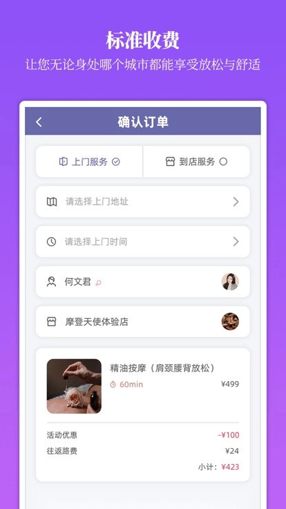 足不出户即可享受高品质生活服务,摩登天使为您开启便捷之门。这款专业应用整合了按摩、家政、美甲等多种上门服务,通过严选认证商家与技师,保障每个环节安全可靠;线上预约高效便捷,标准化收费透明合理,从推拿到保洁都能一键完成。独创的速约功能可实现快速匹配,客服通道随时响应需求,精心设计的界面让操作流畅直观。想体验星级服务轻松到家?感兴趣的话就来试试吧。