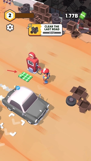 当加油站升级到2级后,继续清除剩下的道路障碍,与此同时收取油泵旁边自动生成的货币,以推动最终的道路清理进度。