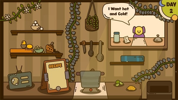 当所有订单都处理完毕后,一天的经营便告一段落,这时玩家可以花费金币解锁更多种类的配料,用来制作各式各样的饮品。