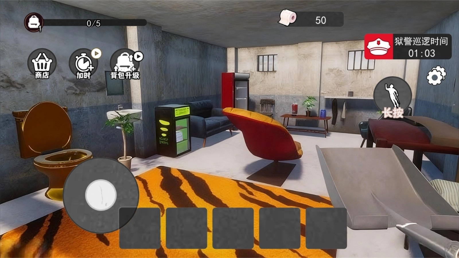 硬核生存设定:监狱环境封闭且充满监控,狱警定期巡逻,玩家需在有限时间内避开视线,利用环境要素完成逃脱。